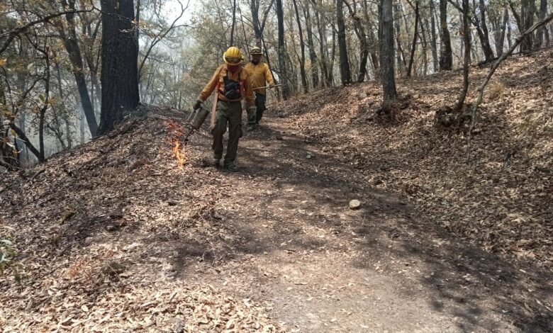 En este punto, los trabajos de combate y mitigación están a cargo de 27 combatientes oficiales de la Comisión Nacional Forestal (CONAFOR), 8 combatientes Conafor especialistas en manejo del fuego, 6 de Protección Forestal Municipal, 22 elementos de la Secretaría de la Defensa Nacional (SEDENA), 13 combatientes de Gobierno del Estado, 12 combatientes Aprovechamiento Forestal y 24 propietarios. Asimismo, equipo aéreo de la Secretaría de la Defensa Nacional (SEDENA) apoyo en las labores con descargas de agua para la liquidación y traslado de personal.