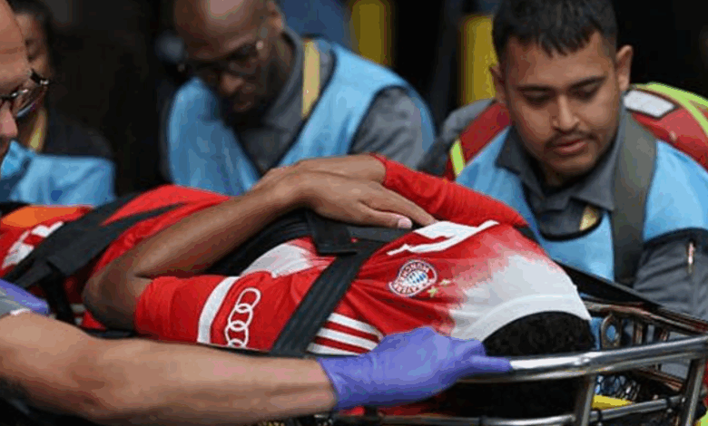 La lesión ocurrió cuando el portero del PSG, Gianluigi Donnarumma, se lanzó por el balón y con el cuerpo aplastó e hizo palanca con la pierna izquierda de Musiala.