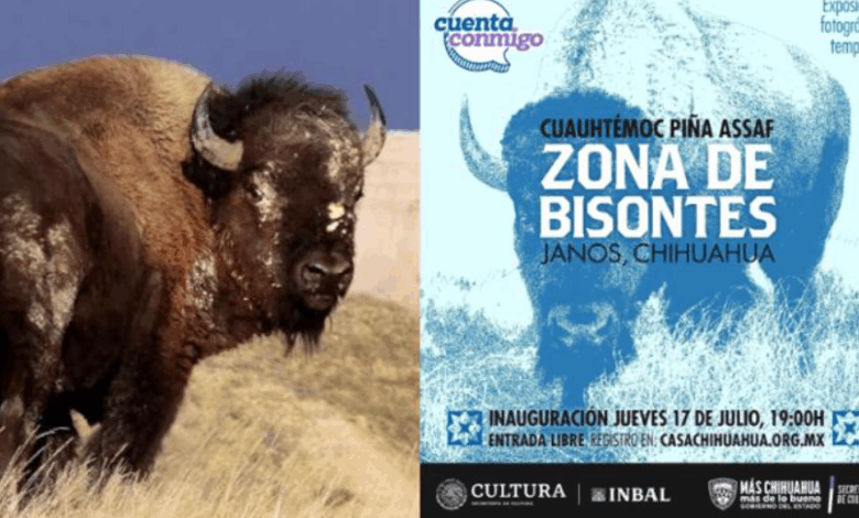 La muestra reúne 37 piezas fotográficas, entre imágenes documentales, archivos personales y materiales de investigación, que retratan la riqueza ecológica y simbólica del bisonte americano en la región de Janos, al noroeste del estado.