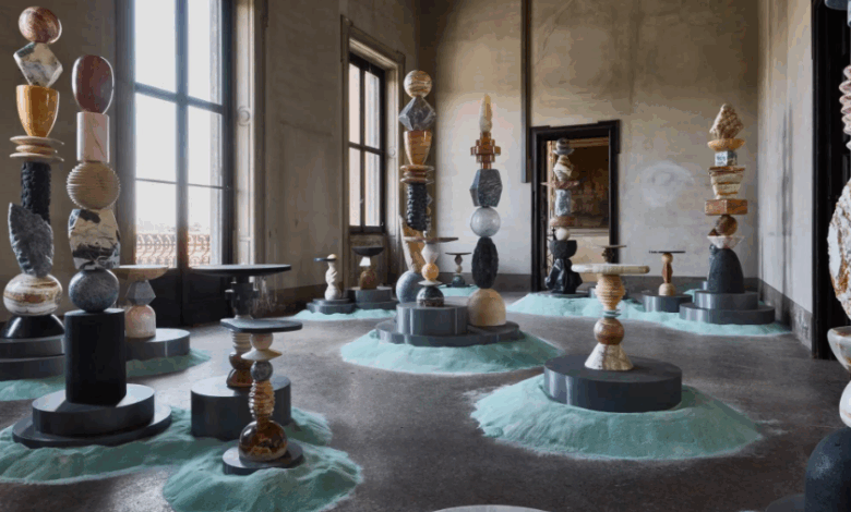 El pasado abril en el Salone del Mobile , la feria anual de muebles en Milán, Sten Studio, una firma de diseño con sede en la Ciudad de México, exhibió 11 esculturas, algunas de hasta siete pies de altura, hechas de piedras geométricas coloridas colocadas una sobre otra. Incorporando rocas de todo el mundo (calcita azul de México, ónix verde y rosa de Medio Oriente, mármol Calacatta Lincoln de Estados Unidos), cada estructura tipo tótem estaba rodeada de arena turquesa que, dice el fundador y director creativo del grupo, José Miguel Schnaider, representaba tanto el polvo que se puede acumular al tallar piedra como un paisaje intergaláctico imaginario. La muestra, celebrada en una villa en ruinas del siglo XIX en las afueras de la ciudad, se inspiró en la alineación planetaria, las ruinas arqueológicas y la unidad global, dice Schnaider, de 34 años. “Todas las sociedades observan el cosmos. Los tótems y el arte vertical son un concepto universal que se puede encontrar en muchas culturas. En este momento intenso, queríamos crear arte que representara lo que tenemos en común”.